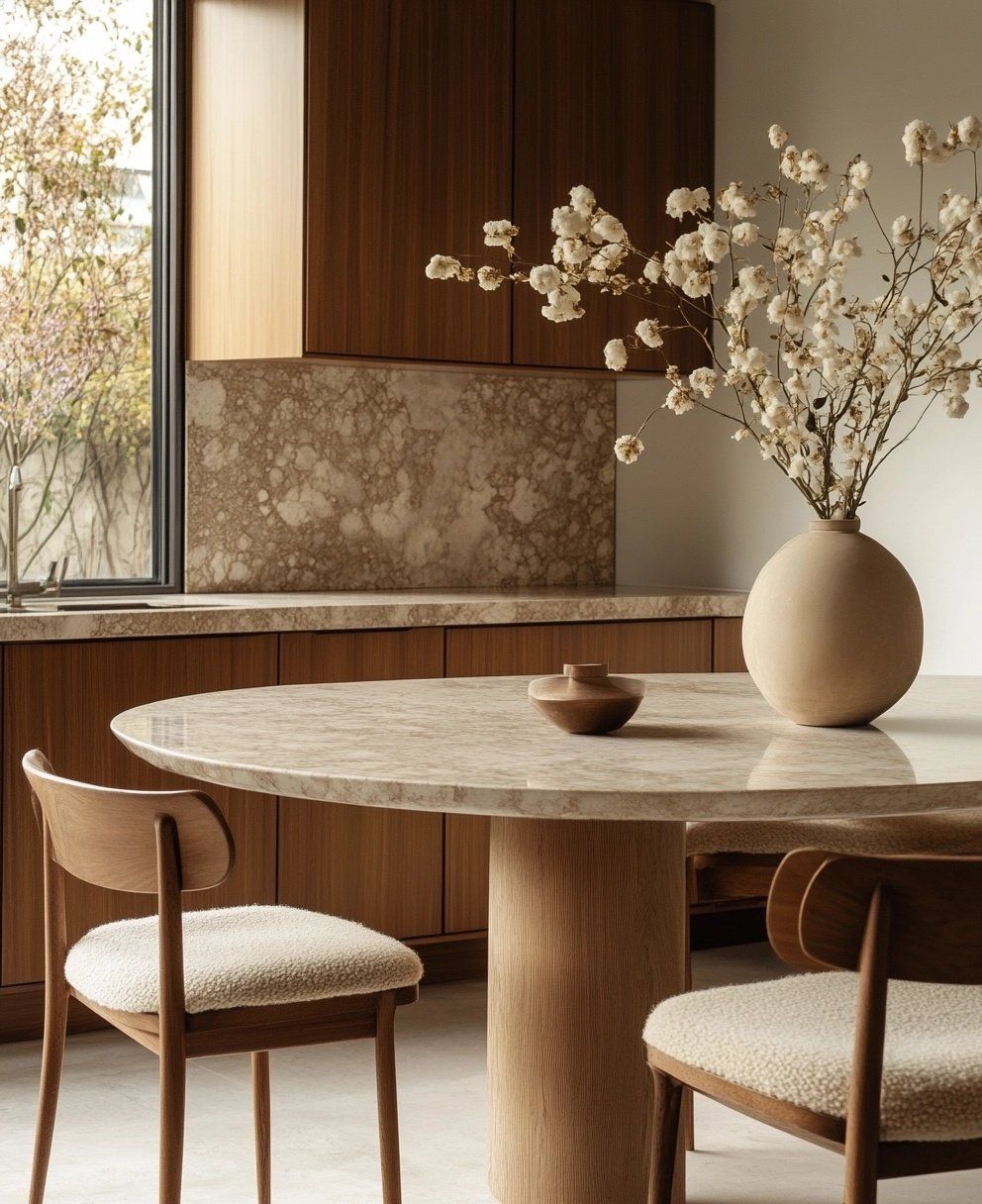 כששיש ועץ נפגשים נוצר דיאלוג בין קרירות אלגנטית לחום טבעי.