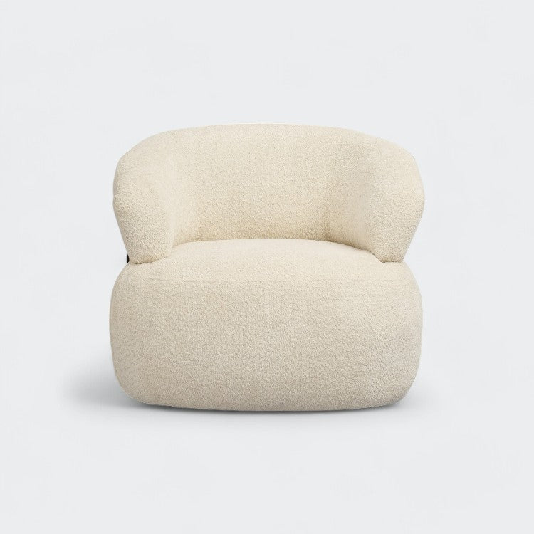 כורסא אמיליה מבד בוקלה רך ומפנק, בעיצוב מודרני.מושלמת לסלון, לחדר שינה או לפינת ישיבה.
