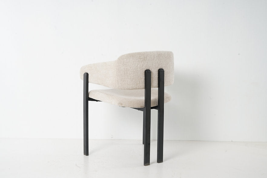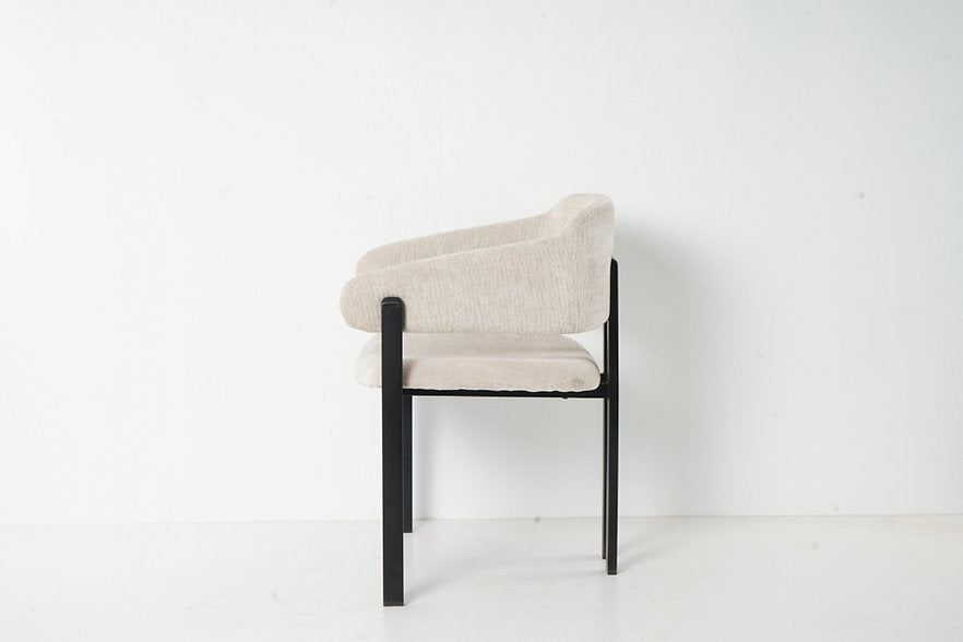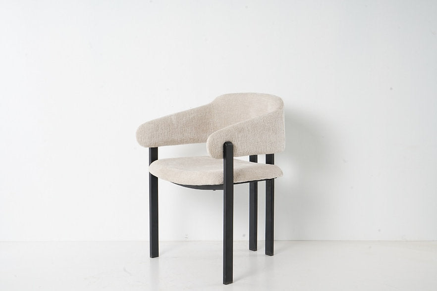 כיסא מרופד בקווים נקיים ובולטים, שמשלב בין עיצוב מודרני לבין נוחות יומיומית. מושב וגב מרופדים בגוון שמנת למראה נקי ואלגנטי.