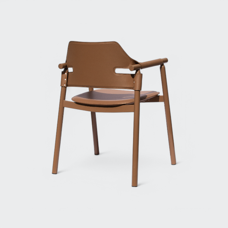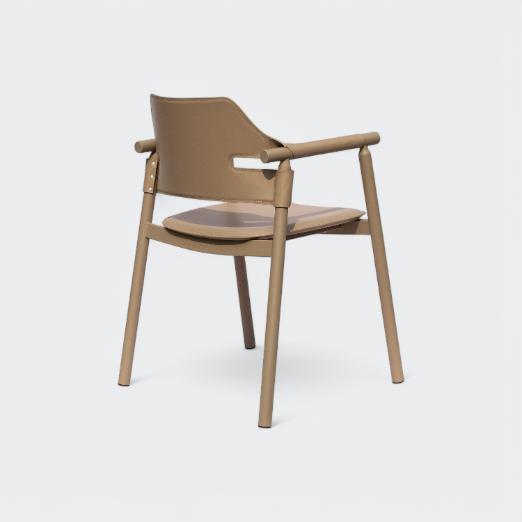 כסא אוכל מעוצב עם מושב דמוי עור איכותי, משולב ברגלי ברזל.כסא עם עיצוב מודרני המשלב נוחות ואסתטיקה, ומתאים לכל חלל בבית.