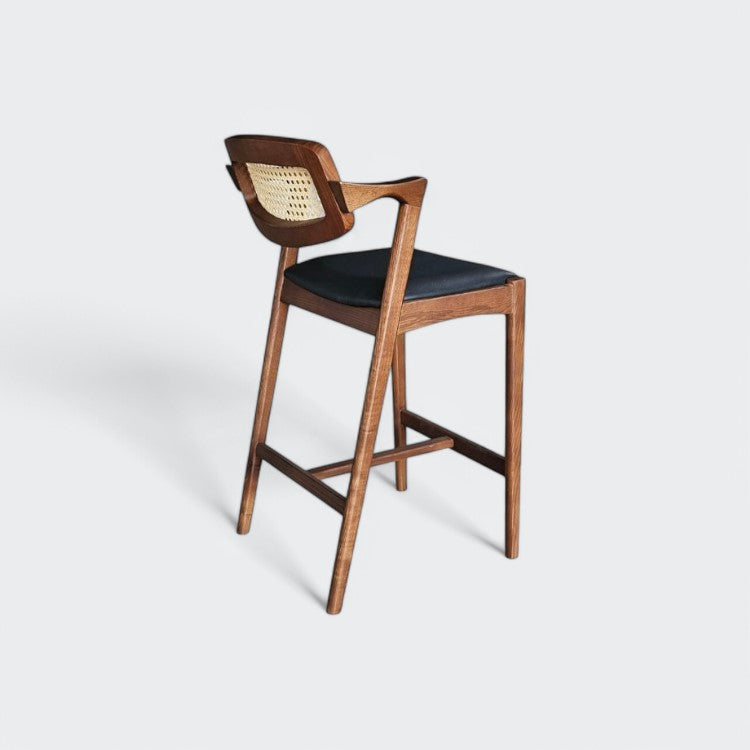 כסא בר טום מעץ, עם גב מראטן ומושב מבד, מציע שילוב של עיצוב טבעי ואלגנטי. הדגם הייחודי מתאים לכל בר או דלפק ומביא עמו תחושת חמימות וסטייל.
