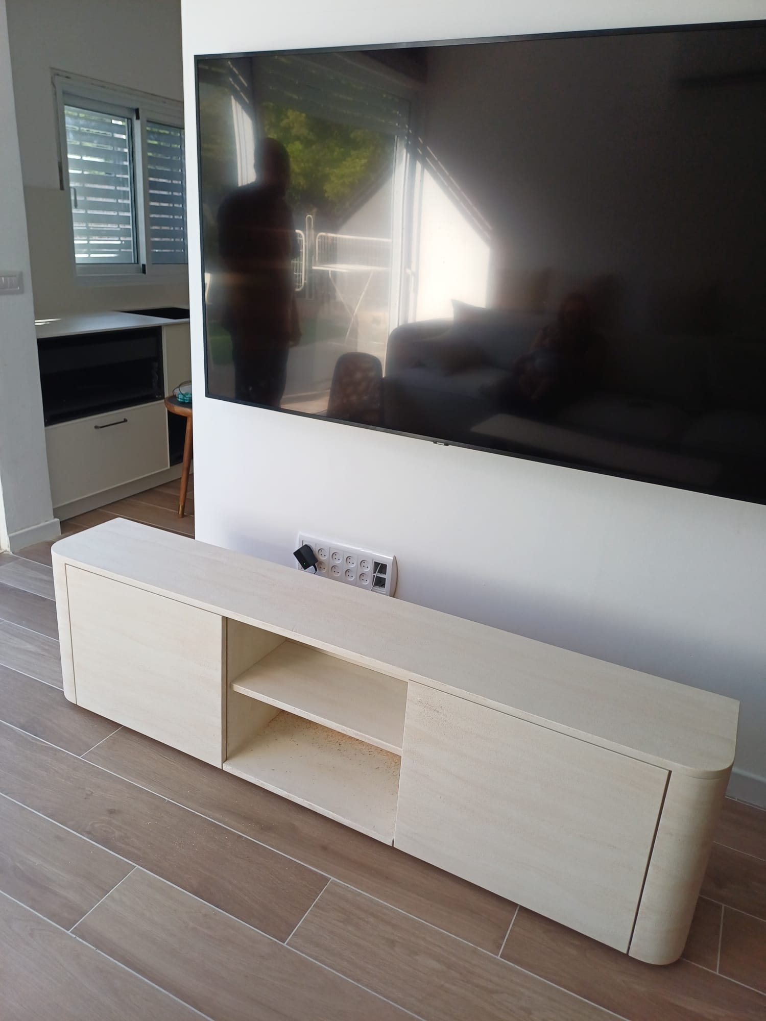 מזנון דמוי טרוונטין עם דלתות טריקה שקטה בלחיצה. פינות מעוגלות למראה קלאסי ומודרני.