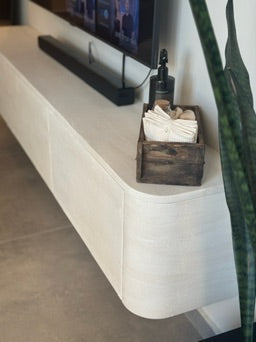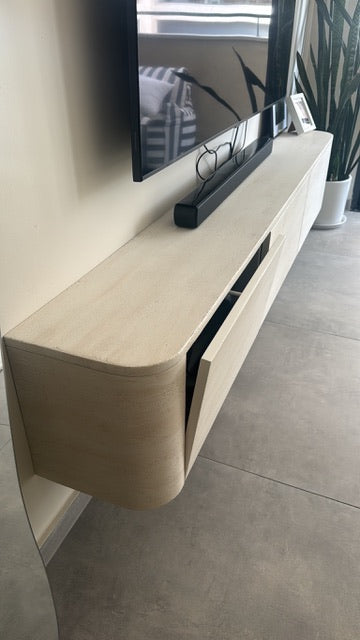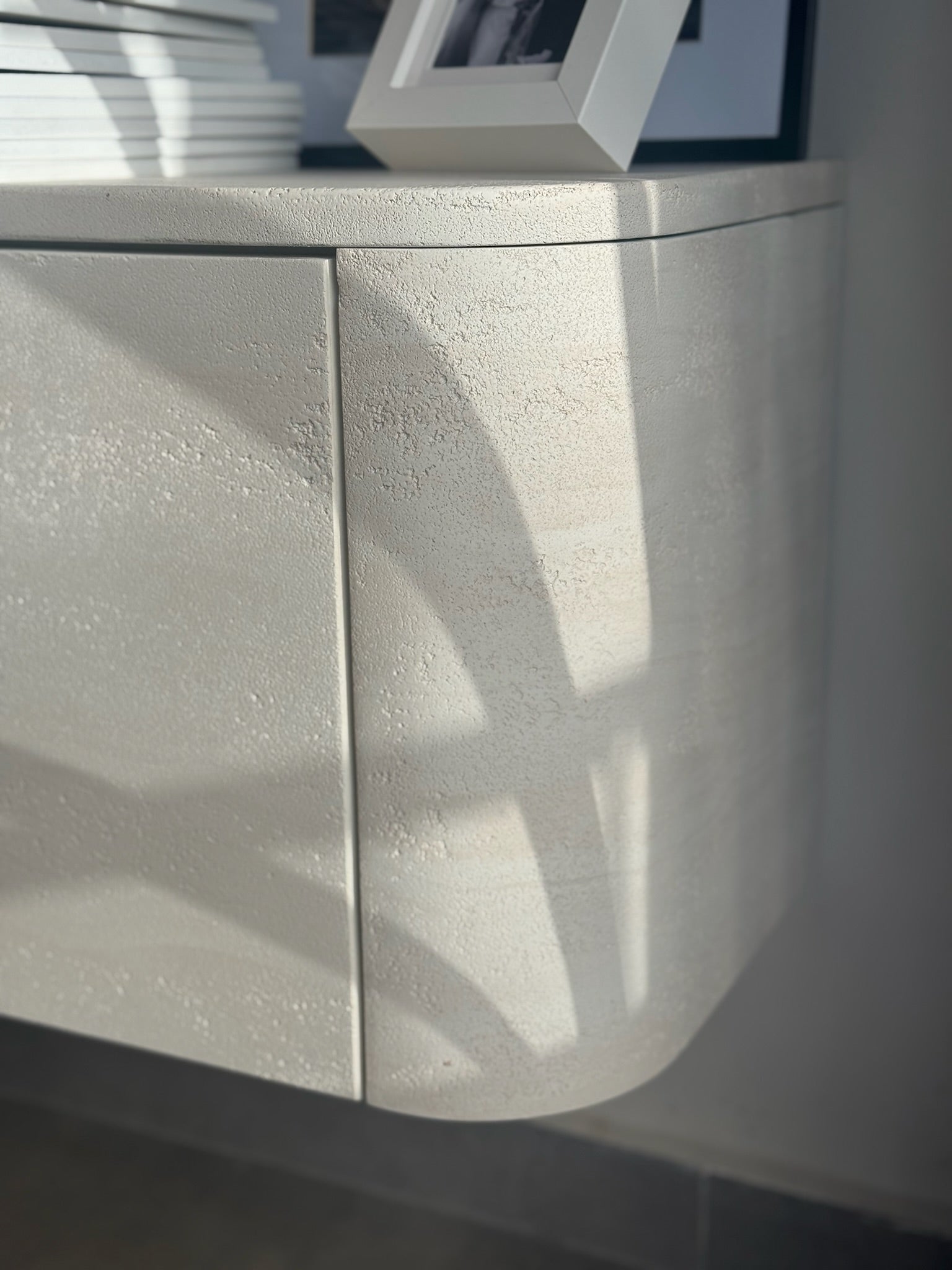 מזנון דמוי טרוונטין עם דלתות טריקה שקטה בלחיצה. פינות מעוגלות למראה קלאסי ומודרני.