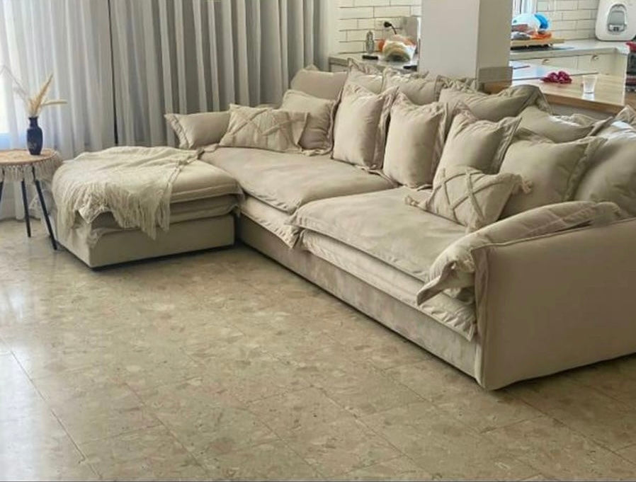 הספה שלנו מיוצרת בקפידה בעבודת יד, ומשלבת נוחות מרבית עם מראה אלגנטי ומוקפד.