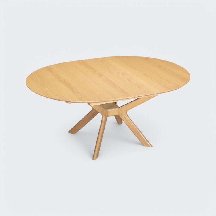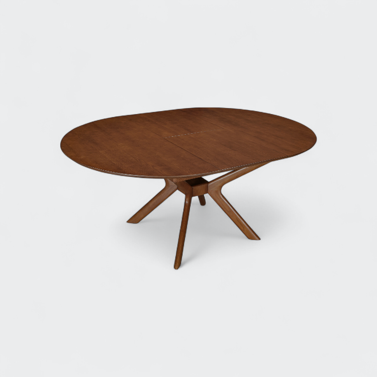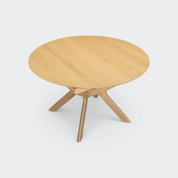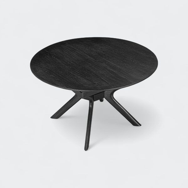 שולחן אוכל עגול עלמה עם פלטת פורניר ורגל עץ מלא.עיצוב אלגנטי וייחודי שמשדרג כל חלל, ומביא עימו תחושת חמימות וסטייל.