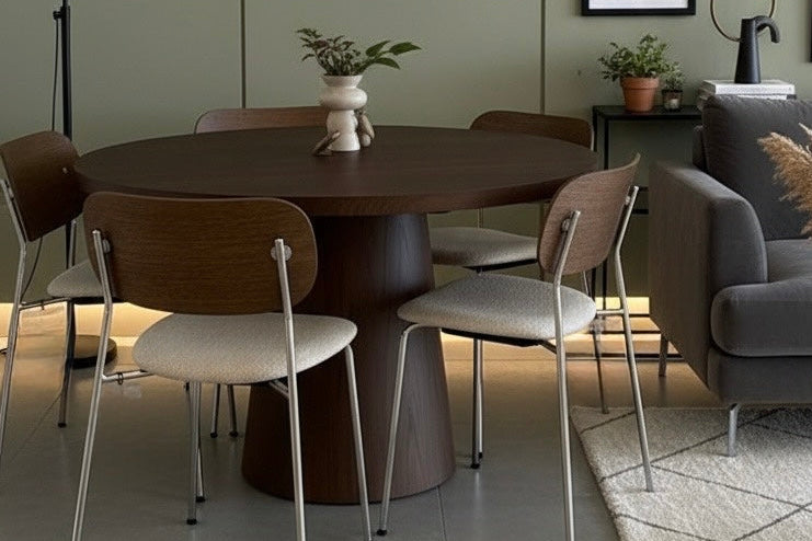 שולחן אוכל מעץ אגוז/אלון בצביעה ייחודית. השולחן נוח להזזה יציב ומייצר חושה מדויקת ויוקרתית בחלל.