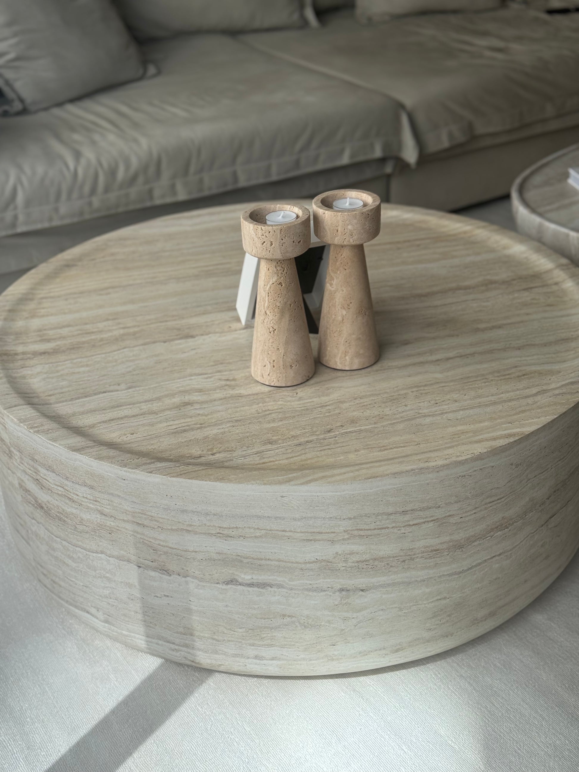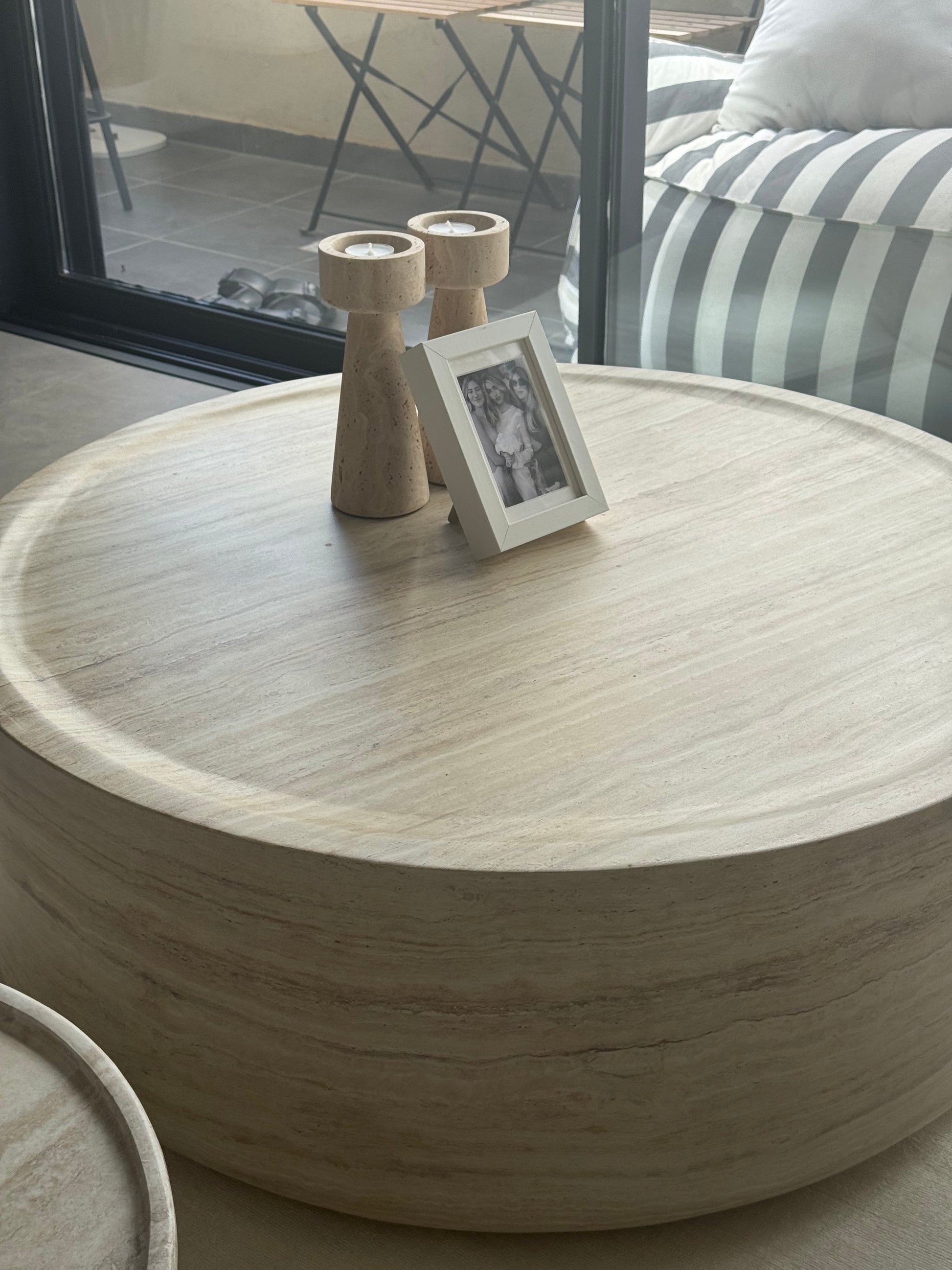 שולחן בייצור חדשני המדמה אבן טרוורטין אמיתית , קל לניקוי, ניתן להזזה ויציב מאוד. גימור אבן מדויק, שולחן שלא ניתן להתעלם מיופיו בחלל.