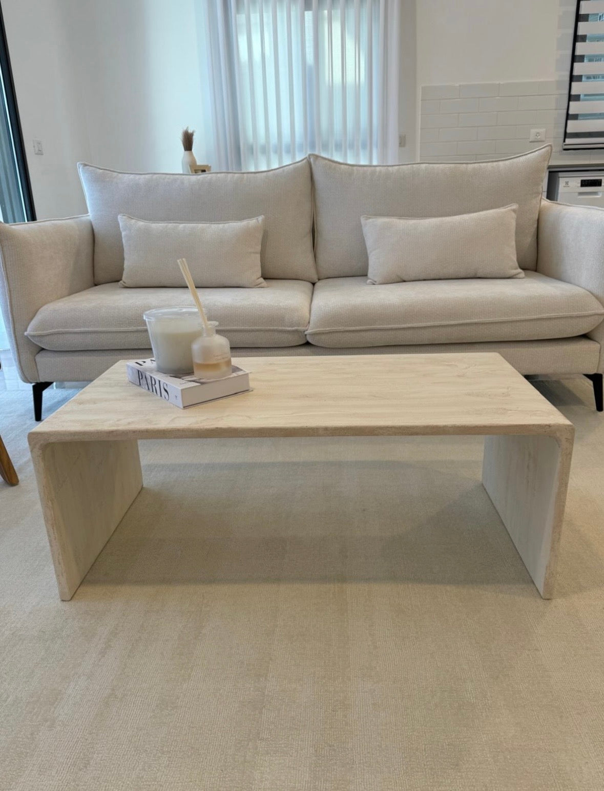 שולחן דמוי טרוונטין לסלון מעץ בטכניקה מיוחדת של צביעה דמוי שיש למראה ומגע של טרוונטין אמיתי.