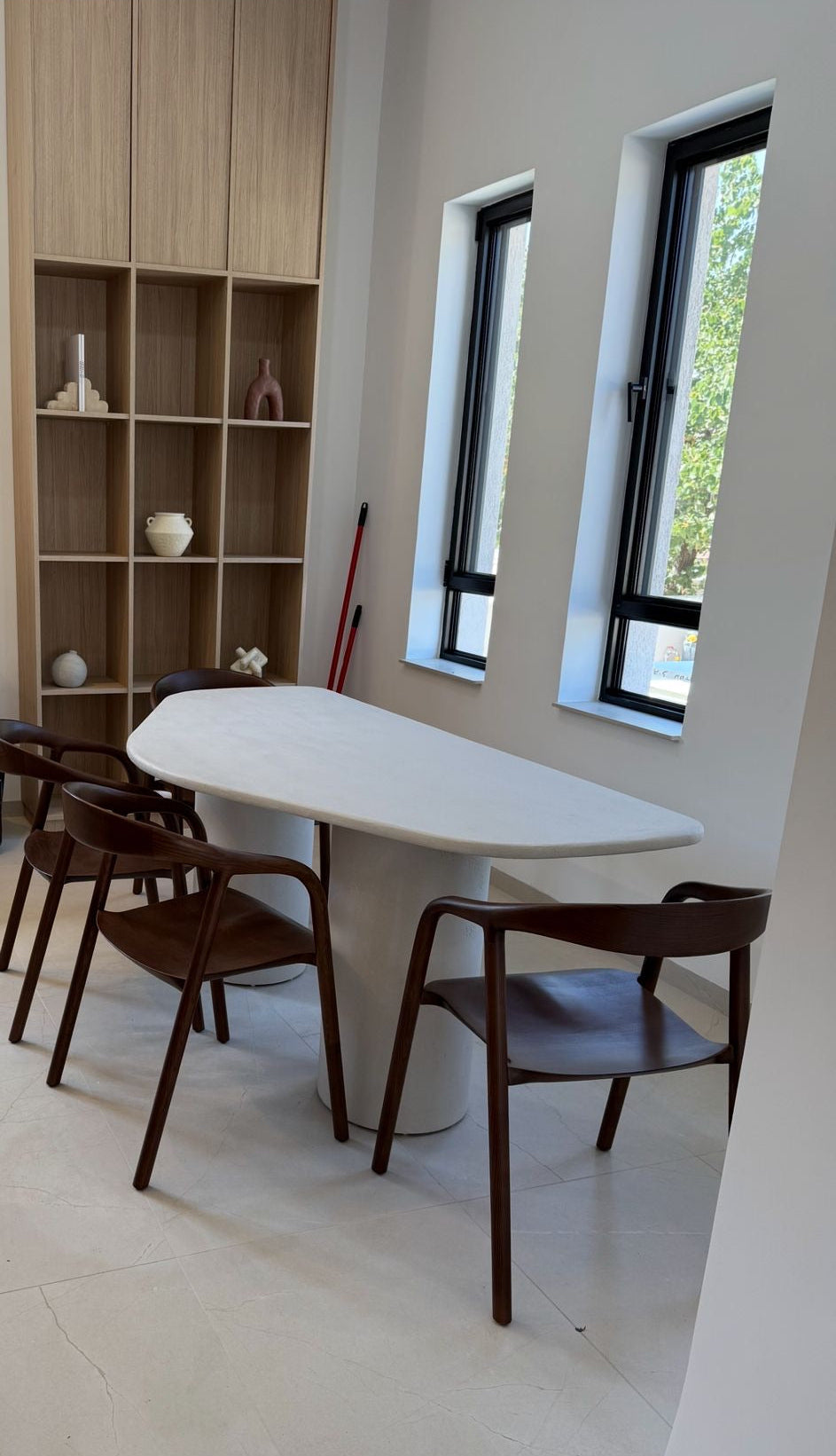 שולחן אוכל דמוי אבן אפקט בטון מעץ בצביעה ייחודית, מדמה בצורה מדויקת את שולחן טרוונטין טבעי. השולחן נוח להזזה יציב ומייצר חושה מדויקת ויוקרתית בחלל.